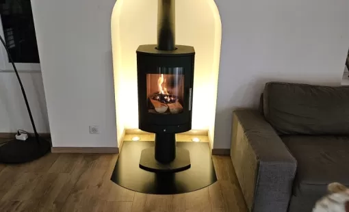 Installation d’un poêle à bois Heta et pose de plaque de parement à Dijon